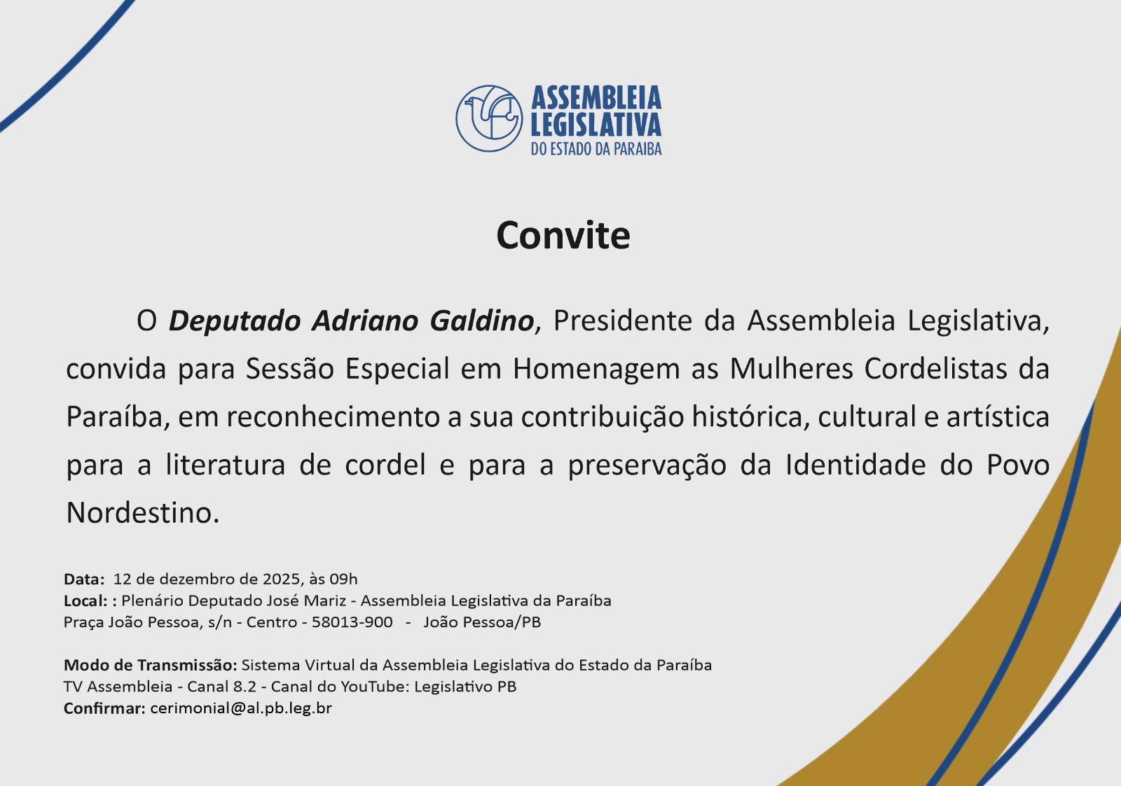 O Cordel que agora é patrimônio cultural e imaterial da Paraíba pela Lei 13.540/2025, abriu-se em cidadania no nosso estado e hoje nossas cordelistas foram homenageadas em propositura do presidente da casa dep; Adriano Galdino.